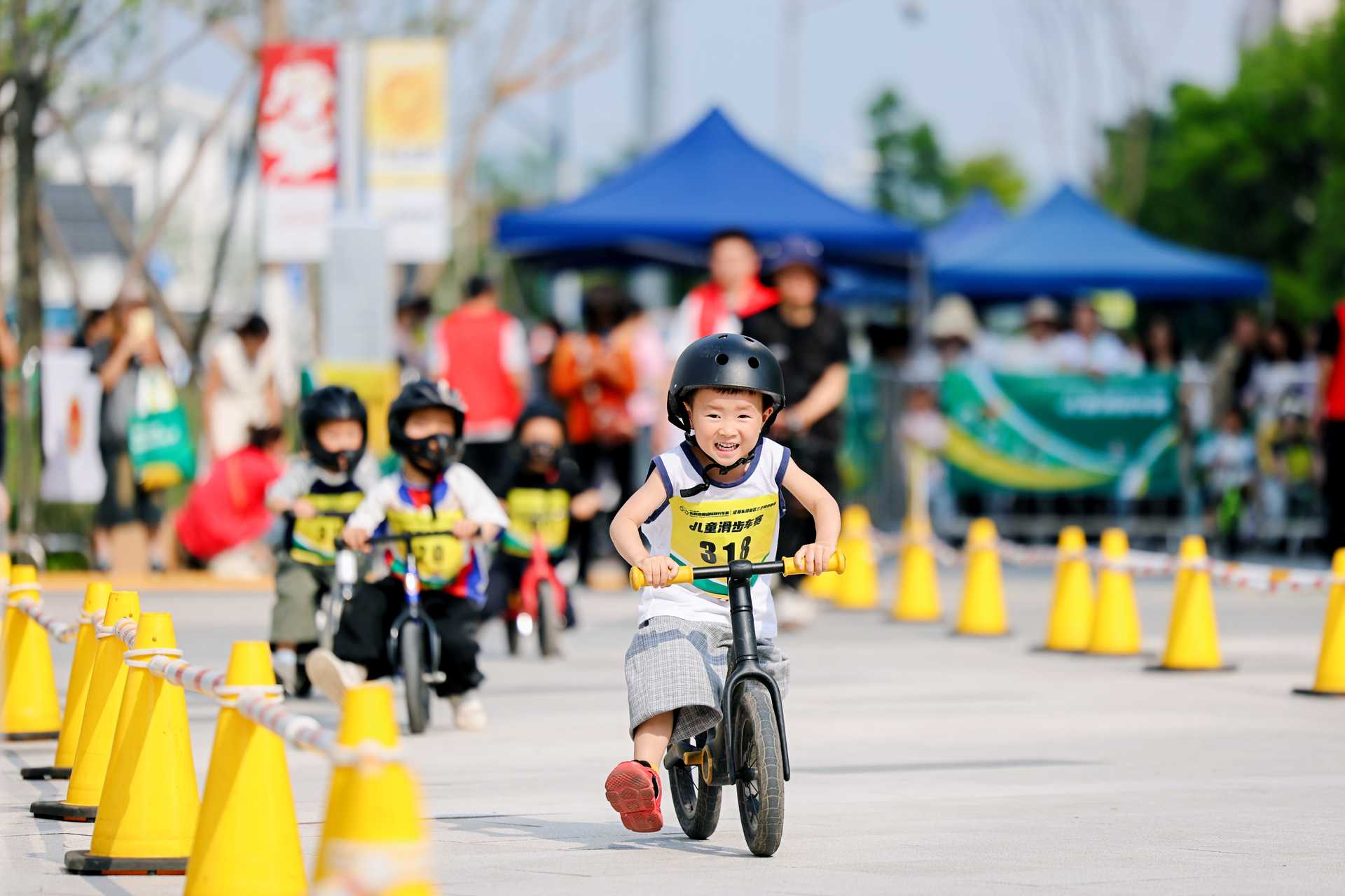 比赛当天,儿童滑步车赛也同步举行,200多名3至6岁的萌娃分成不同的组别,脚踏滑步车奋力驰骋,展现出少儿体育的独特魅力。